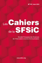 Les Cahiers de la SFSIC s’inscrivent dans une tradition d’échanges d’informations et de débats scientifiques telle que l’avait initiée Jean Meyriat en 1978 en publiant le premier numéro de la Lettre d’Inforcom. Cette publication, fondée par Brigitte Chapelain et Gino Gramaccia, est actuellement développée sous la responsabilité éditoriale d’Aurélia Lamy et destinée à la communauté scientifique des enseignants-chercheurs, doctorants, étudiants en Sciences de l’Information et de la Communication (SIC). Mais elle s’adresse aussi aux collègues d’autres disciplines et aux professionnels.